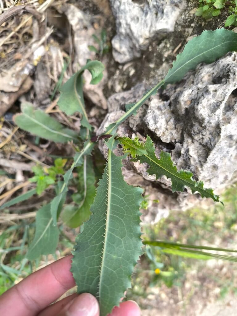 One clear identifying feature of the plant is the line of thorns growing down the spine in the center of the back of the leaf. If you want to eat these, you can easily remove these thorns by running your nails down the spine.